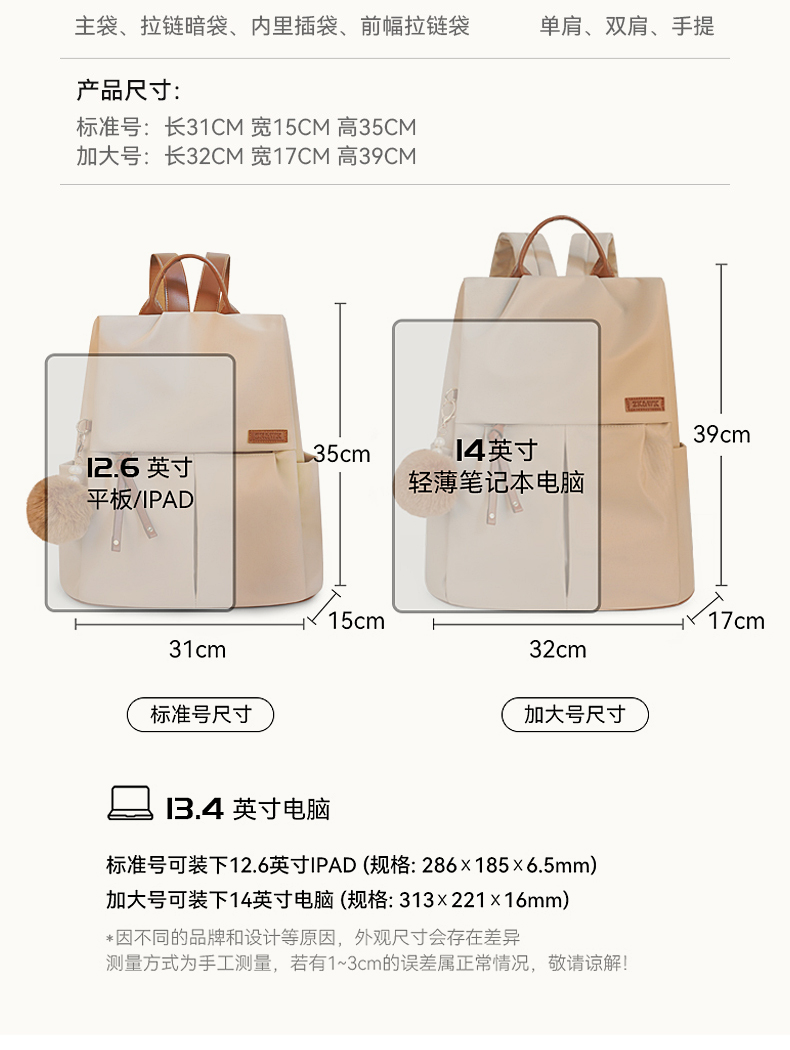 双肩包女新款牛津布女士背包旅游轻便大容量通勤旅行书包
